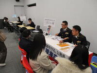校外進路ガイダンスではGメッセ群馬に訪問しました。多数の大学・短大・専門学校・企業が参加しており、生徒は自分の興味のあるブースに積極的に説明を聞きに行っていました。